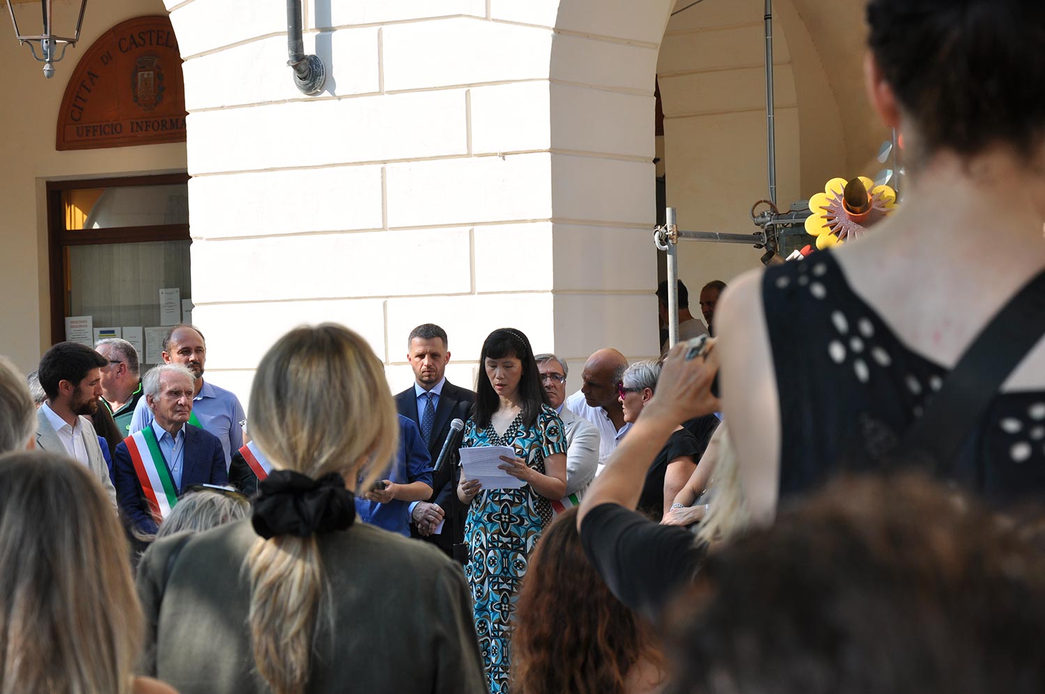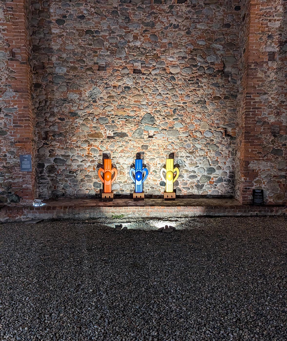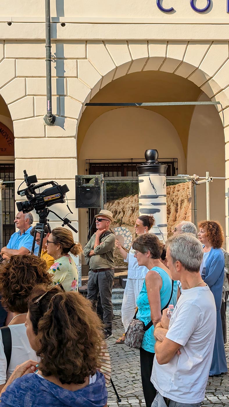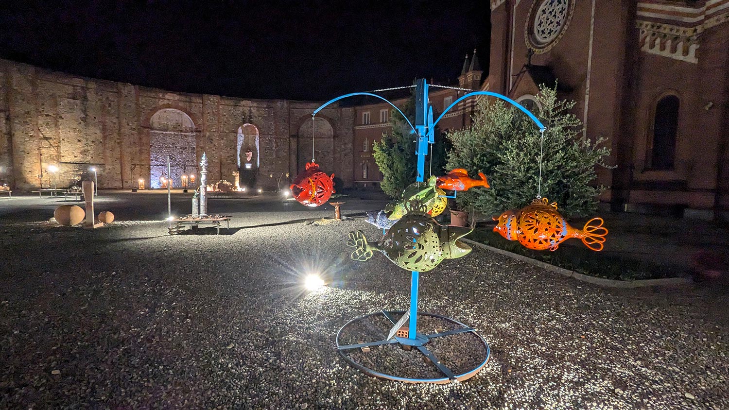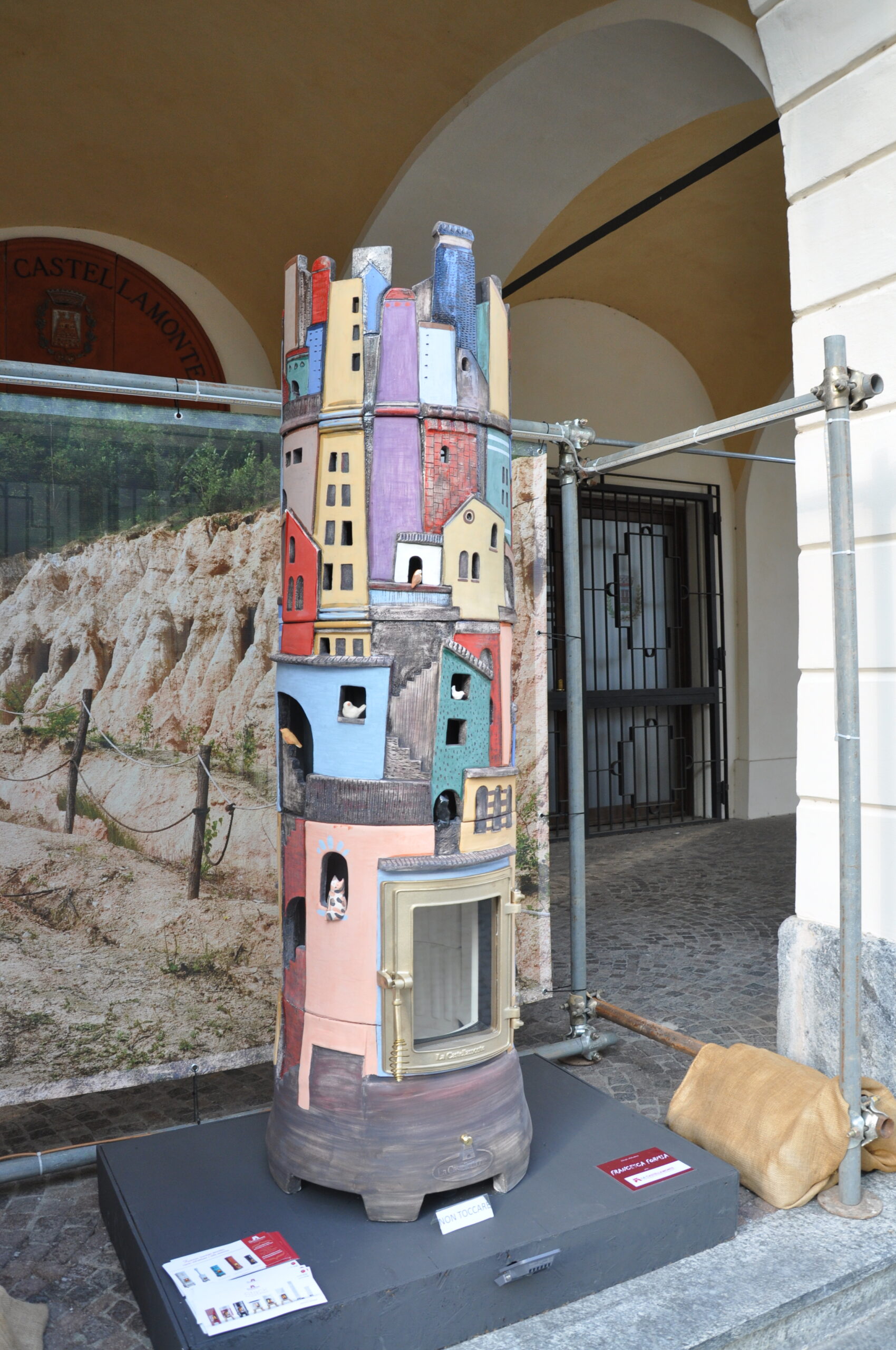 Below are some images from the installations at the Rotonda Antonelliana and under the arches of the Castellamonte town hall, where our designer stoves took center stage.